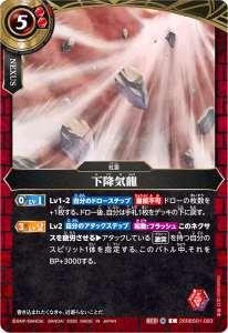 自分のデッキの上から3枚をオープンする。その中の【激突】を持つスピリットカード1枚を手札に加える。残りは好きな順でデッキの下に戻す。