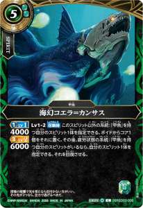 相手によって自分のライフが減った時、系統:「甲魚」を持つ自分のスピリット1体を指定できる。ボイドからコア1個をそれに置く。