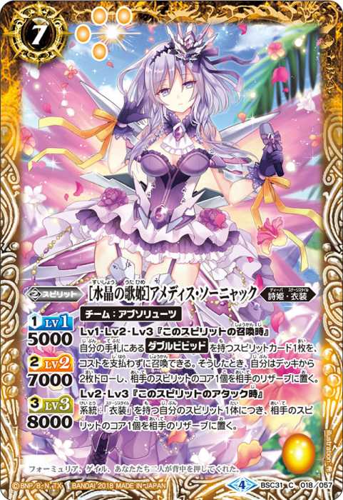 自分の「10thディーバ」か、【トワイライトゴシック】を持つ自分のスピリットがアタックしたとき、相手のスピリットのコア1個をリザーブに置く。