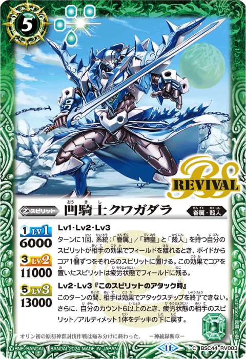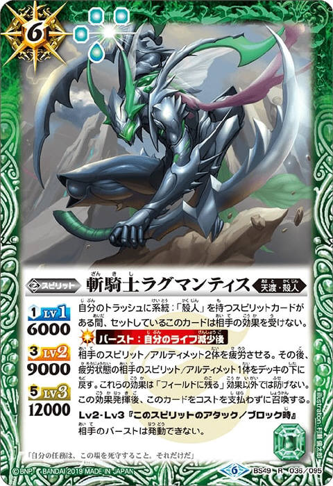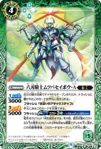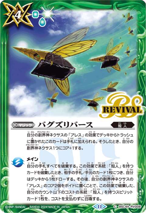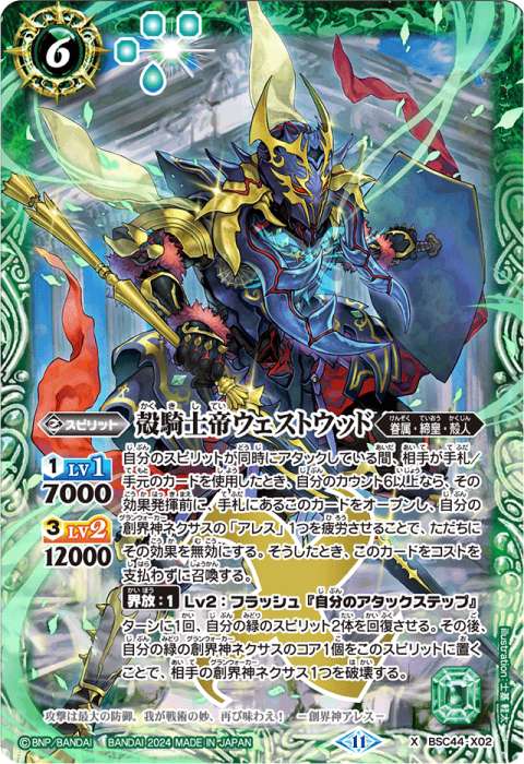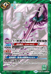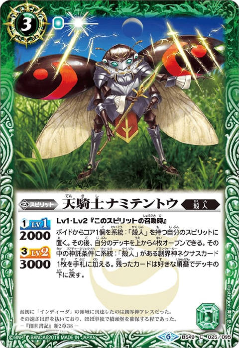 その後、自分の緑の創界神ネクサスのコア1個をこのスピリットに置くことで、相手の創界神ネクサス1つを破壊する。