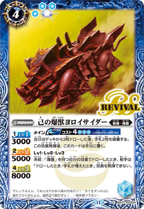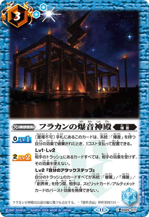 系統:「爆蒼」を持つ自分の効果でドローしたとき、相手は「ドローしたとき/手札が増えたとき」効果を発揮できない。