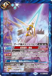 系統:「星魂」/「光導」を持つ自分のスピリットがアタックしたとき、最もコストの低い相手のスピリット1体を破壊できる。