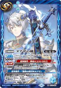 最もコストの低い相手のスピリット/アルティメット1体を破壊し、破壊した対象のコスト1につき、自分の創界神ネクサスの「契約神ヌアザ」にコア+1する(最大5個)。