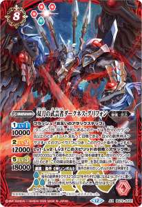 そうしたとき、相手が、相手の手札にあるマジックカード1枚を破棄しなければ、カード名の異なる系統:「鱗徒」を持つ自分のブレイヴ1つにつき、相手のライフのコア1個をトラッシュに置く。